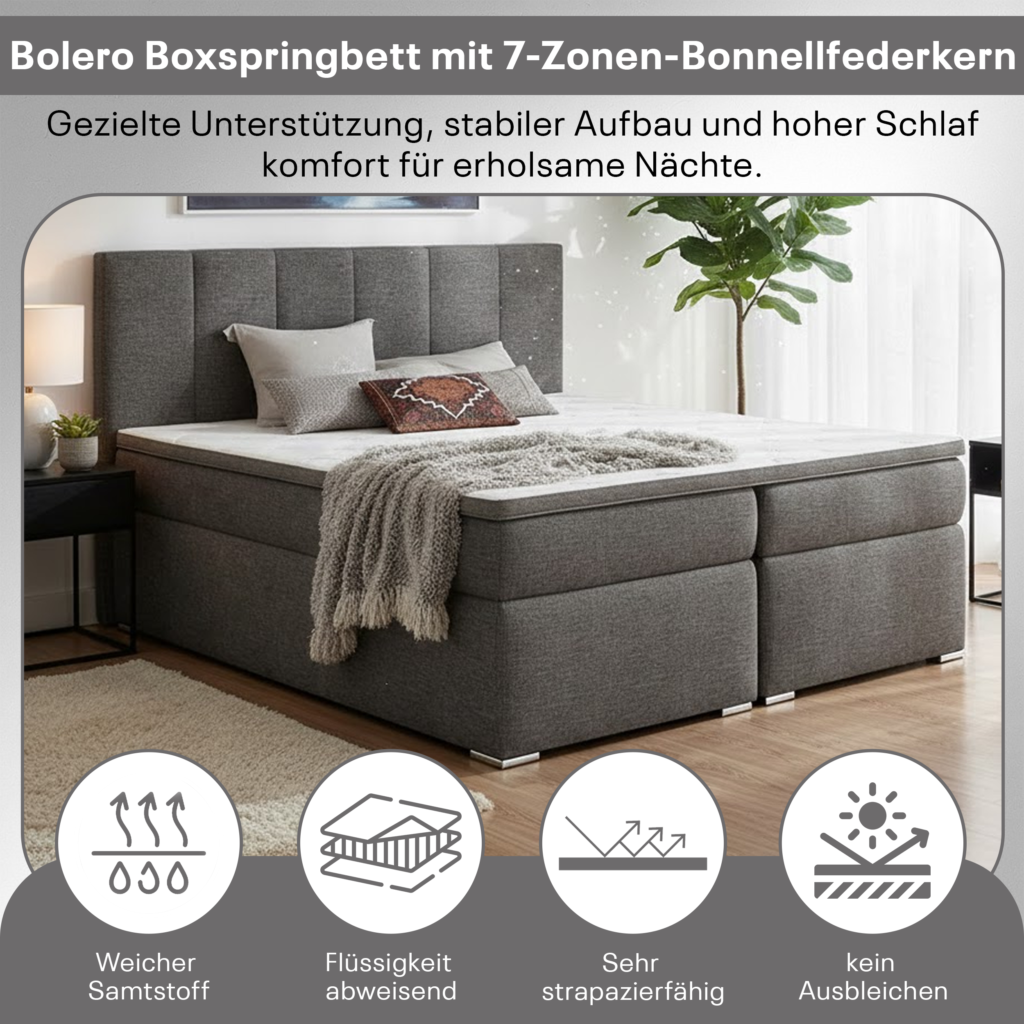 Best for You – Boxspringbett Polsterbett Sawana mit Bonellfederkern-Matratze und Topper Schlafzimmer