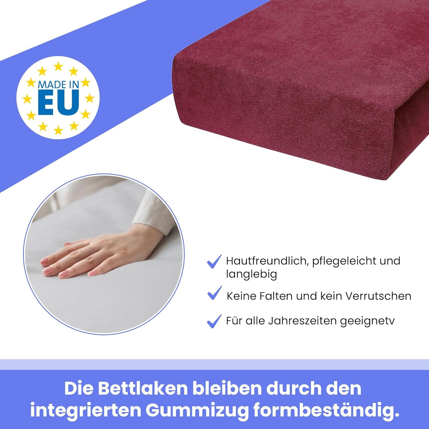 Elastisch & Rutschfest – Der Elasthan-Anteil sorgt dafür, dass sich das Spannbettlaken optimal an verschiedene Matratzenhöhen anpasst, fest aufliegt und nicht verrutscht. Ideal für Kinder-, Jugend- und Erwachsenenbetten gleichermaßen.