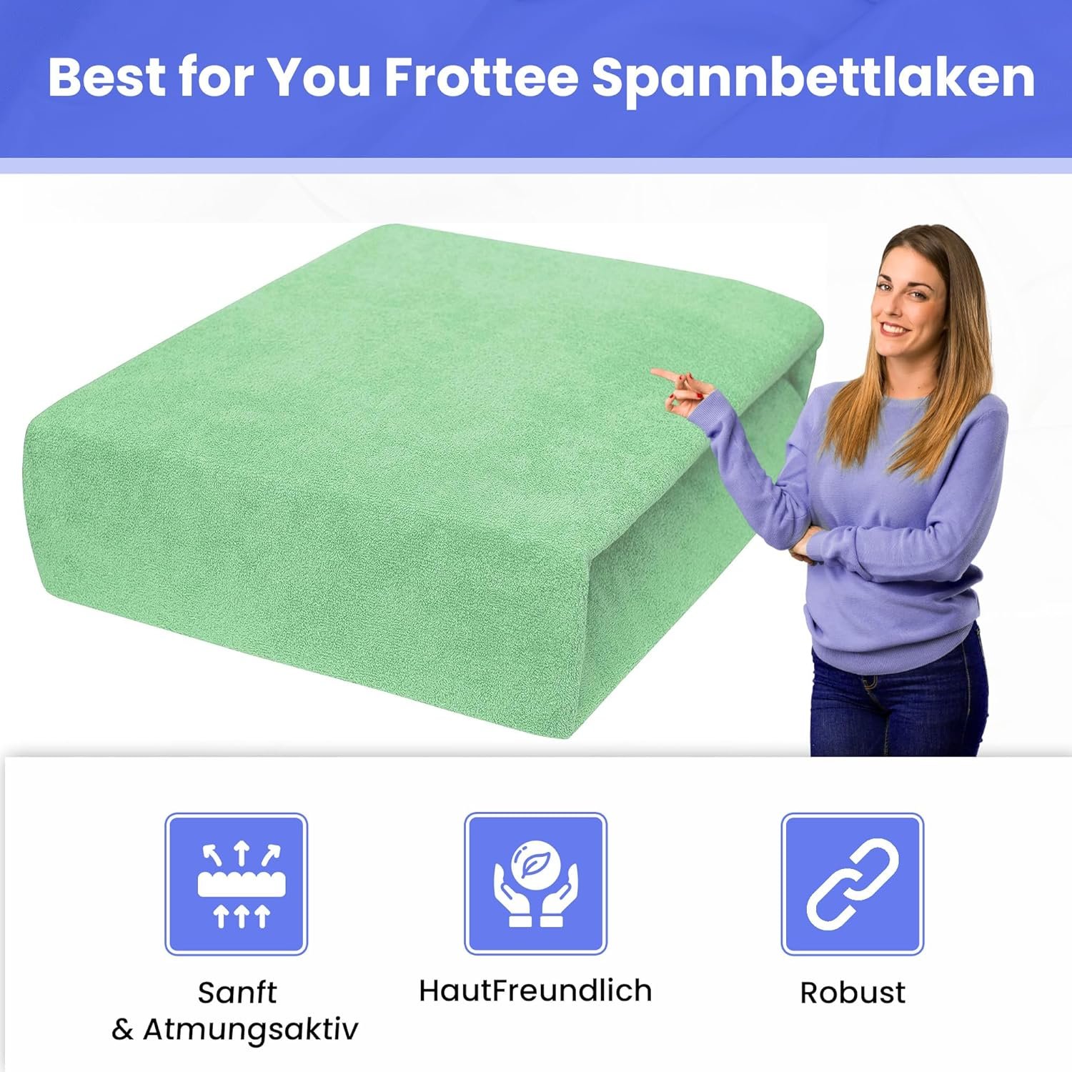 Das Frottee-Spannbettlaken ist in 14 Größen und 22 modernen Farben erhältlich – ideal für jedes Bett, ob Einzel-, Doppel- oder Wasserbett. Mit dieser großen Auswahl lässt sich Ihr Schlafzimmer individuell gestalten und verleiht jedem Raum ein Gefühl von Komfort und Wärme.