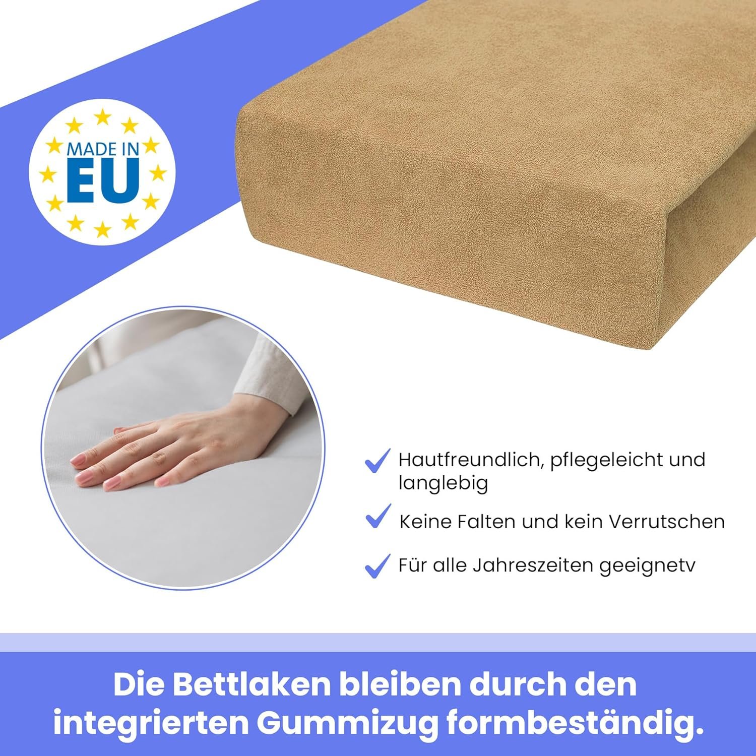 Dieses Spannbettlaken wird innerhalb der Europäischen Union gefertigt und erfüllt hohe Qualitätsstandards. Die Produktion erfolgt unter fairen Bedingungen, wodurch Sie nicht nur Qualität, sondern auch ein gutes Gefühl beim Kauf erhalten.