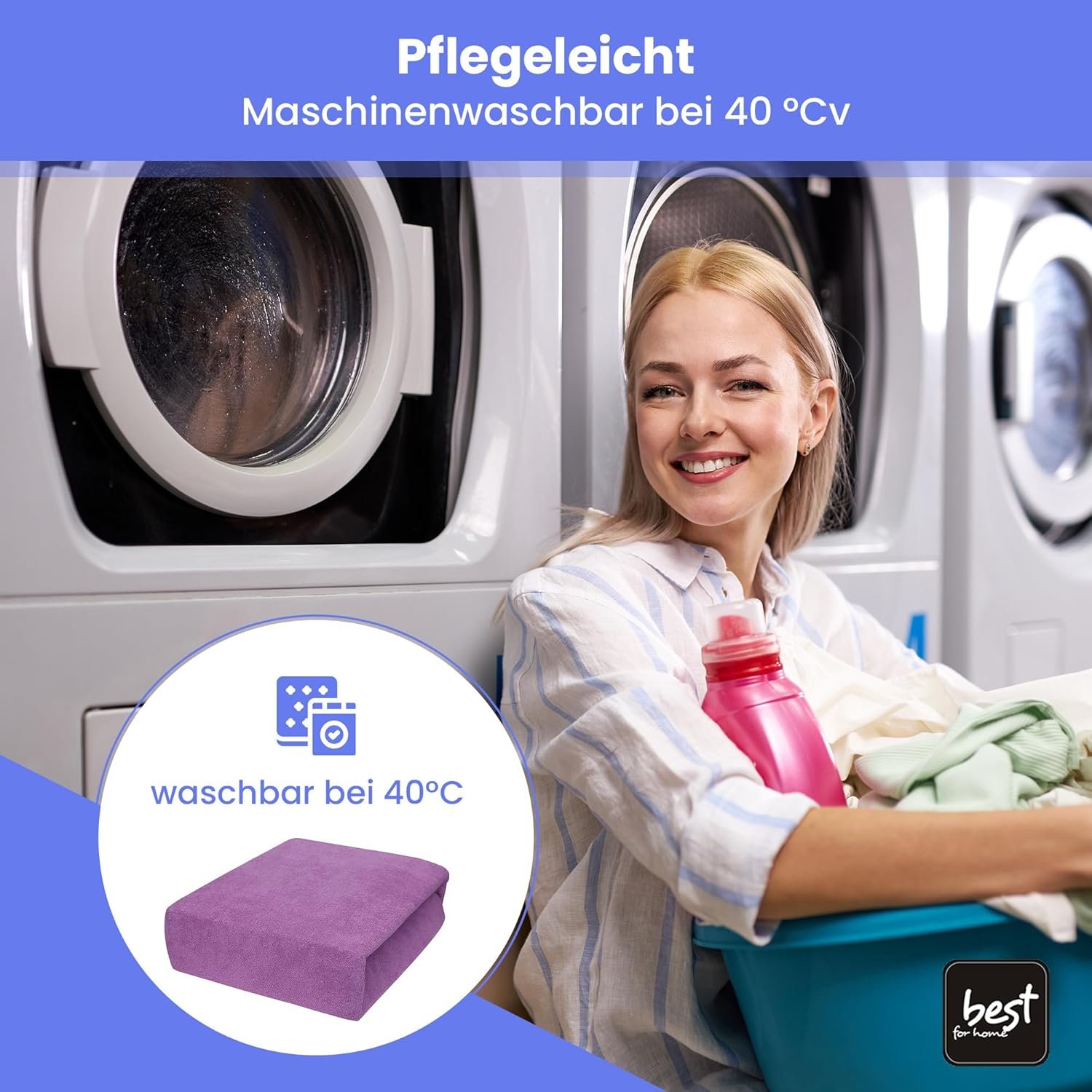 Dank des Elasthan-Anteils ist das Laken besonders dehnbar und sitzt faltenfrei auf der Matratze. Es bleibt auch nach häufigem Waschen formstabil. Das Spannbetttuch ist bei 40 °C maschinenwaschbar, pflegeleicht und somit ideal für den täglichen Gebrauch geeignet.
