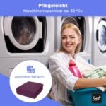 Das Spannbetttuch wird in der Europäischen Union gefertigt und steht für höchste Qualitätsstandards. Es ist pflegeleicht, waschbar bei 40 °C und bleibt auch nach häufigem Waschen angenehm weich. Die robuste Struktur sorgt für Farb- und Formbeständigkeit über lange Zeit hinweg.