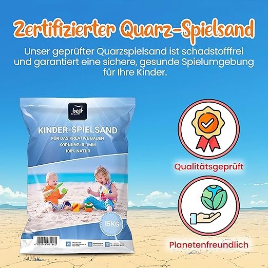 Hochwertiger, gewaschener Quarzsand mit 0–1 mm Körnung sorgt für besonders weiches, angenehmes Spielen im Sandkasten und bietet optimale Bedingungen für kreative Outdoor-Abenteuer. - Keimfrei & Rein: