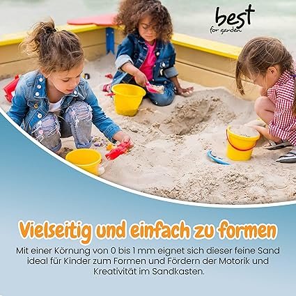 Sicher, sauber und kinderfreundlich: Unser keimfreier Spielsand aus Natursteinkörnern ist die perfekte Wahl für eine sichere Spielumgebung. Ideal als Kindersand sorgt er dafür, dass Kinder endlosen Spaß ohne Sorgen haben können. Dieser Premiumsand ist perfekt für alle Sandkastenbedürfnisse und schafft einen sauberen und einladenden Raum. Lassen Sie Ihre Kinder frei und sicher spielen! - Vielseitiger Sand mit abgerundeten Körnern für sicheres Spielen und Dekorieren: