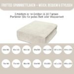 Die Spannbettlaken sind in einer großen Farbvielfalt und vielen Designs erhältlich, passend zu jedem Schlafzimmerstil. Sie eignen sich für Sommer und Winter – leichte Modelle für warme Nächte, Frottier-Varianten für extra Wärme. Perfekt für Betten, Boxspringbetten und Babybetten.
