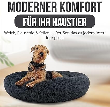 Flauschiges Hundebett 80 cm Dunkelgrau – 9er Set