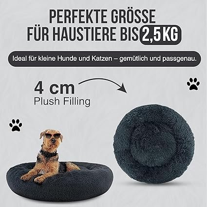 - ✅[𝐒𝐮𝐩𝐞𝐫𝐰𝐞𝐢𝐜𝐡] Dieses flauschige Hundebett und Katzenbett besteht aus einer ultraweichen 4 cm dicken Plüschfüllung und bietet gemütlichen Komfort für einen erholsamen Schlaf. Ideal als Donut Hundebett oder rundes Katzenbett für kleine Haustiere bis 2.5 kg. Das weiche Material hält Ihr Tier besonders an kalten Tagen warm und entspannt. Perfekt für Welpen, Kitten oder kleine Rassen – ein wolkenweiches Lieblingsbett zum Wohlfühlen.