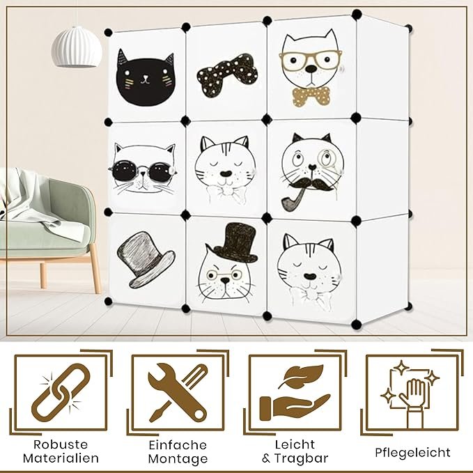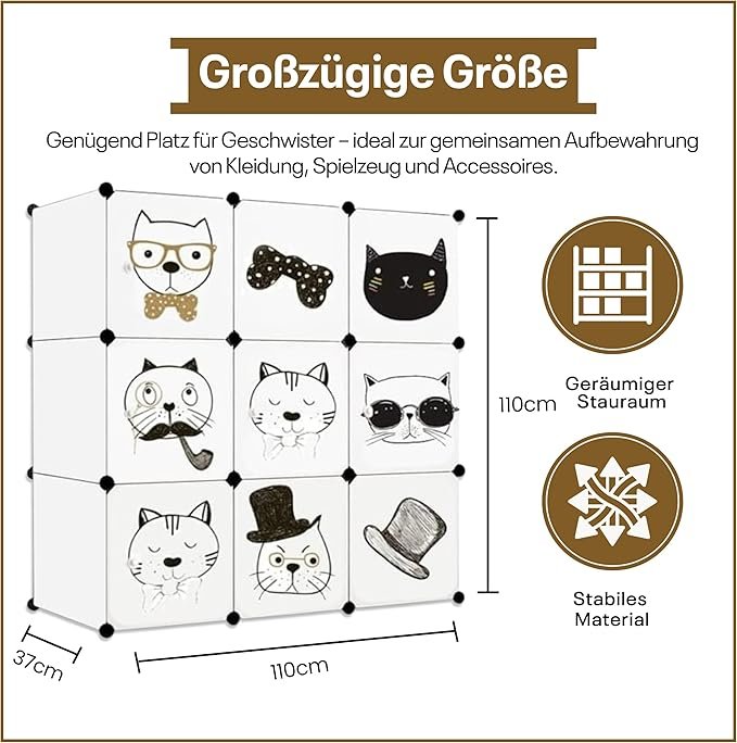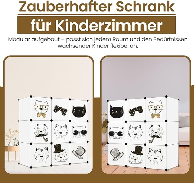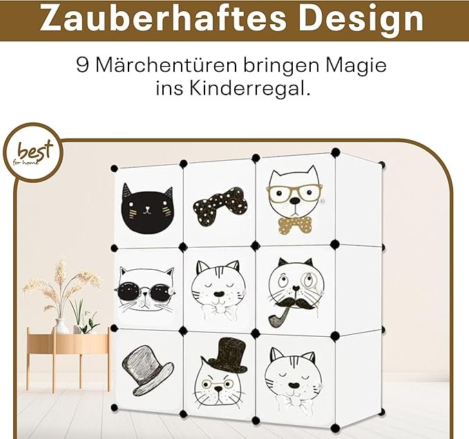 Best For Home | Modularer Kinderkleiderschrank | Märchendesign kleiderschrank kinderzimmer | 9-teiliger Aufbewahrungsschrank | kinderschrank| Ideal für Kinderzimmer, Kleidung, Spielzeug & Schuhe