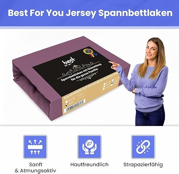 Best for Kids Spannbettlaken Spannbetttuch 100% Baumwolle Jersey in 22 Farben und 9 Größen (180×200, Pflaume)