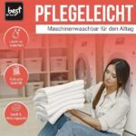 Dieses Spannbettlaken ist pflegeleicht und lässt sich problemlos bei bis zu 40 °C in der Maschine waschen. Es ist außerdem für den Trockner im empfindlichen Zyklus geeignet und kann bei mittlerer Temperatur gebügelt werden. Hergestellt in der EU, bietet es eine hohe Qualität und ist besonders langlebig.