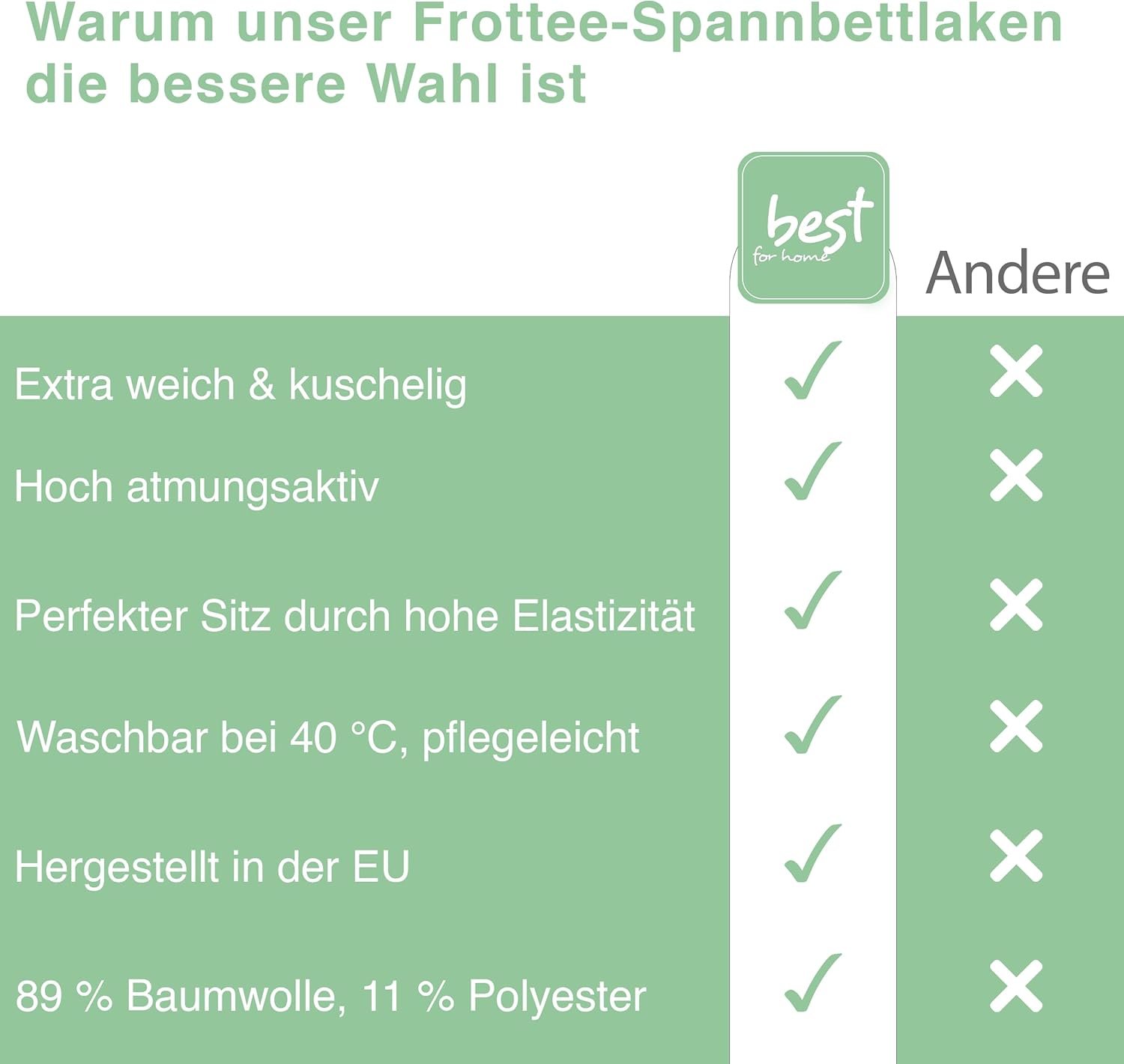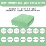 Dank des praktischen Rundumgummis bleibt das Spannbettlaken auch bei Bewegung perfekt auf der Matratze. Es passt auf Matratzen bis ca. 25 cm Höhe bei Erwachsenengrößen und bis ca. 20 cm bei Kinderbettgrößen – kein Verrutschen, sondern ein rundum sicherer Halt und angenehme Haptik.
