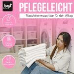 Das Spannbettlaken lässt sich unkompliziert bis 40°C in der Maschine waschen, ist trocknergeeignet im Schonprogramm und kann bei mittlerer Temperatur gebügelt werden. Als hochwertiges EU-Produkt überzeugt es durch lange Haltbarkeit, pflegeleichte Eigenschaften und ein angenehm natürliches Hautgefühl, ideal für den täglichen Gebrauch.