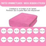 Dank des praktischen Rundumgummibands sitzt das Spannbettlaken fest und zuverlässig auf der Matratze. Es eignet sich für Matratzen bis ca. 25 cm Dicke in Erwachsenengrößen sowie bis ca. 20 cm für Kinderbettmatratzen. Das elastische Material ist superweich und sorgt für einen perfekten Halt ohne Verrutschen – ideal für ruhige und komfortable Nächte.