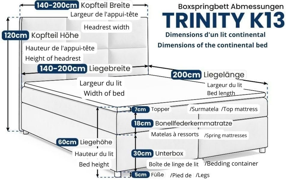Boxspringbett mit Bettkasten Trinity K-13-LAE Bonellfederkern inkl. Topper, mit Lieferung, Aufbau & Entsorgung