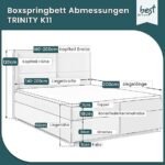 • ✔️【Individually versatile】 The Trinity K-11 is available as a 140×200 box spring bed, a 160×200 bed with storage, a 180×200 bed with mattress, or even as a 200×200 upholstered bed. Its sturdy construction offers superior comfort and a modern design. With a total height of 60 cm, 30 cm box, 18 cm mattress and 7 cm topper, it is an ideally coordinated 160×200 box spring bed with mattress and storage space for any bedroom.