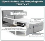Boxspringbett Trinity K-11 mit 7-Zonen-Bonell-Federkernmatratze | Boxspringbett 160×200 mit Bettkasten | Doppelbett mit Matratze und Stauraum | Polsterbett –Lieferung bis Bordsteinkante