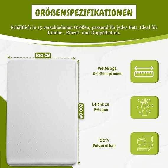 Easy Active Matratze | Schlafmatratze | kaltschaummatratze | Ideal als Kindermatratzen | Erhältlich in 4 Farben und 15 Verschiedenen Größen, Leicht Abnehmbarer (Grün, 80×200 x14)