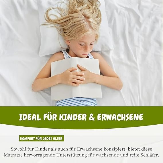 Die Gesamthöhe der Matratze beträgt ca. 11 cm, der Kern ca. 10 cm. Der hohe Härtegrad N25 gewährleistet beste Elastizität, Formstabilität und punktuelle Unterstützung. Alle Textilien sind schadstoffgeprüft nach ÖkoTex Norm 100. So bietet die Matratze sicheren, gesunden und komfortablen Schlaf für jede Körperform und Größe.