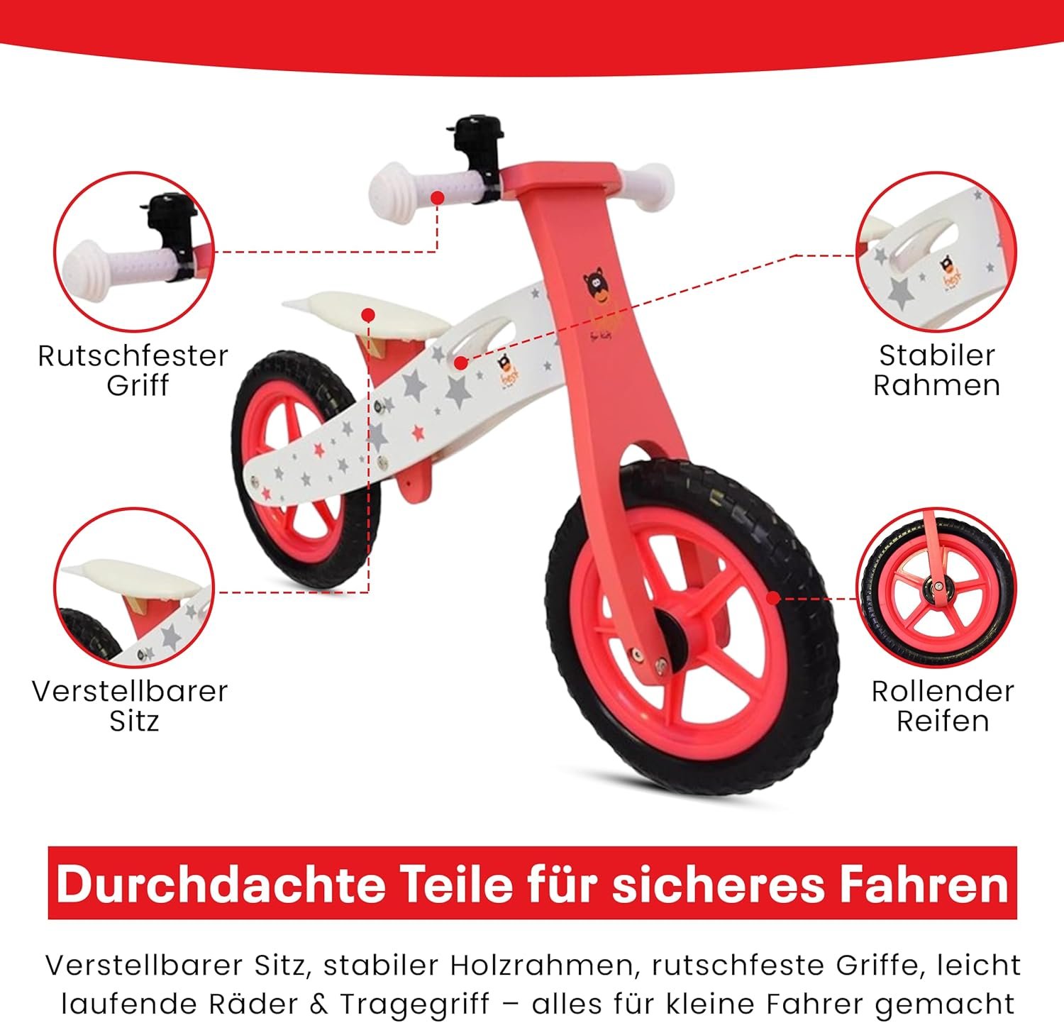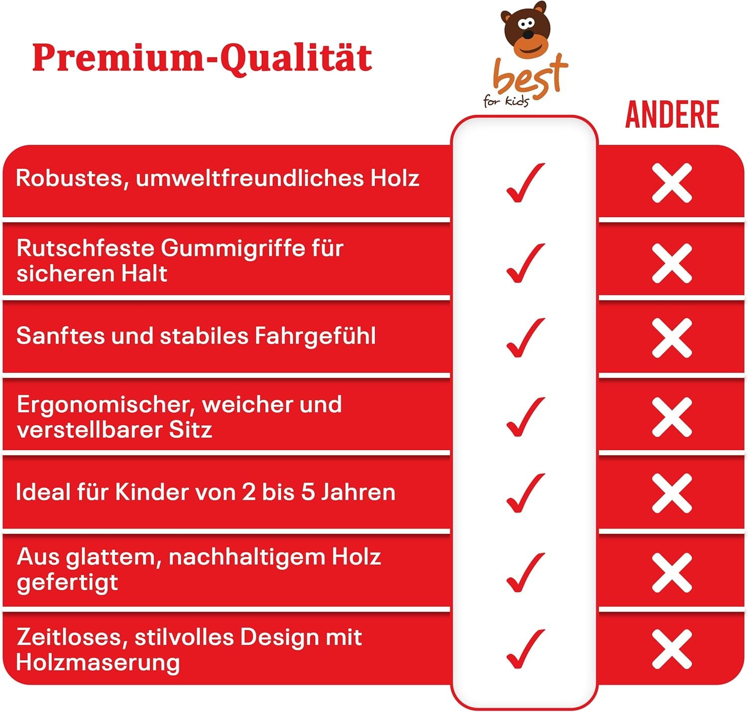 Die Sitzhöhe ist leicht anpassbar, sodass das Laufrad optimal mit Ihrem Kind mitwächst. Ob mit 2 Jahren oder 5 Jahren, das Design sorgt für gesunde Sitzhaltung und Komfort. Eltern profitieren von der einfachen Anpassung, da das Rad lange nutzbar ist und die Entwicklung der Fahrfähigkeiten nachhaltig unterstützt. - ✔️【𝐋𝐞𝐢𝐜𝐡𝐭𝐞𝐫 𝐇𝐨𝐥𝐳𝐫𝐚𝐡𝐦𝐞𝐧 & 𝐒𝐭𝐚𝐛𝐢𝐥𝐢𝐭ä𝐭】