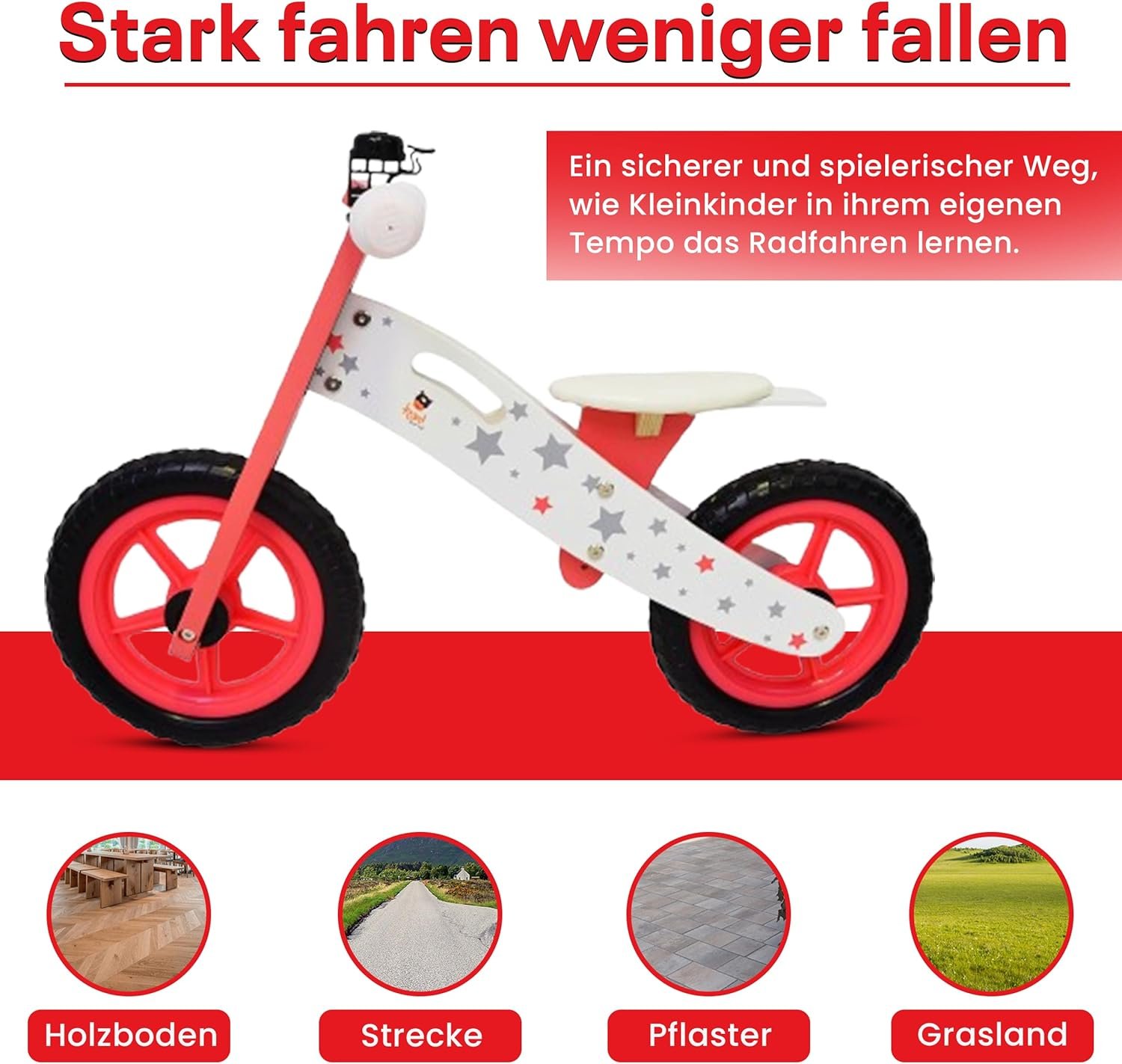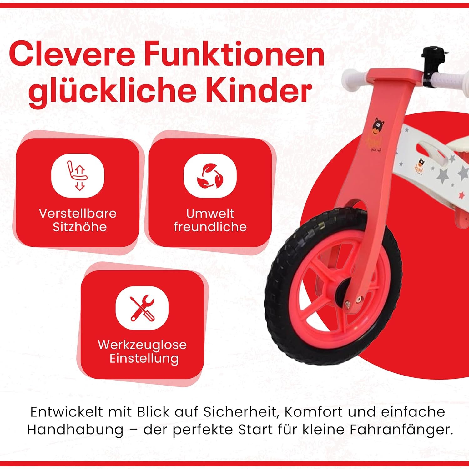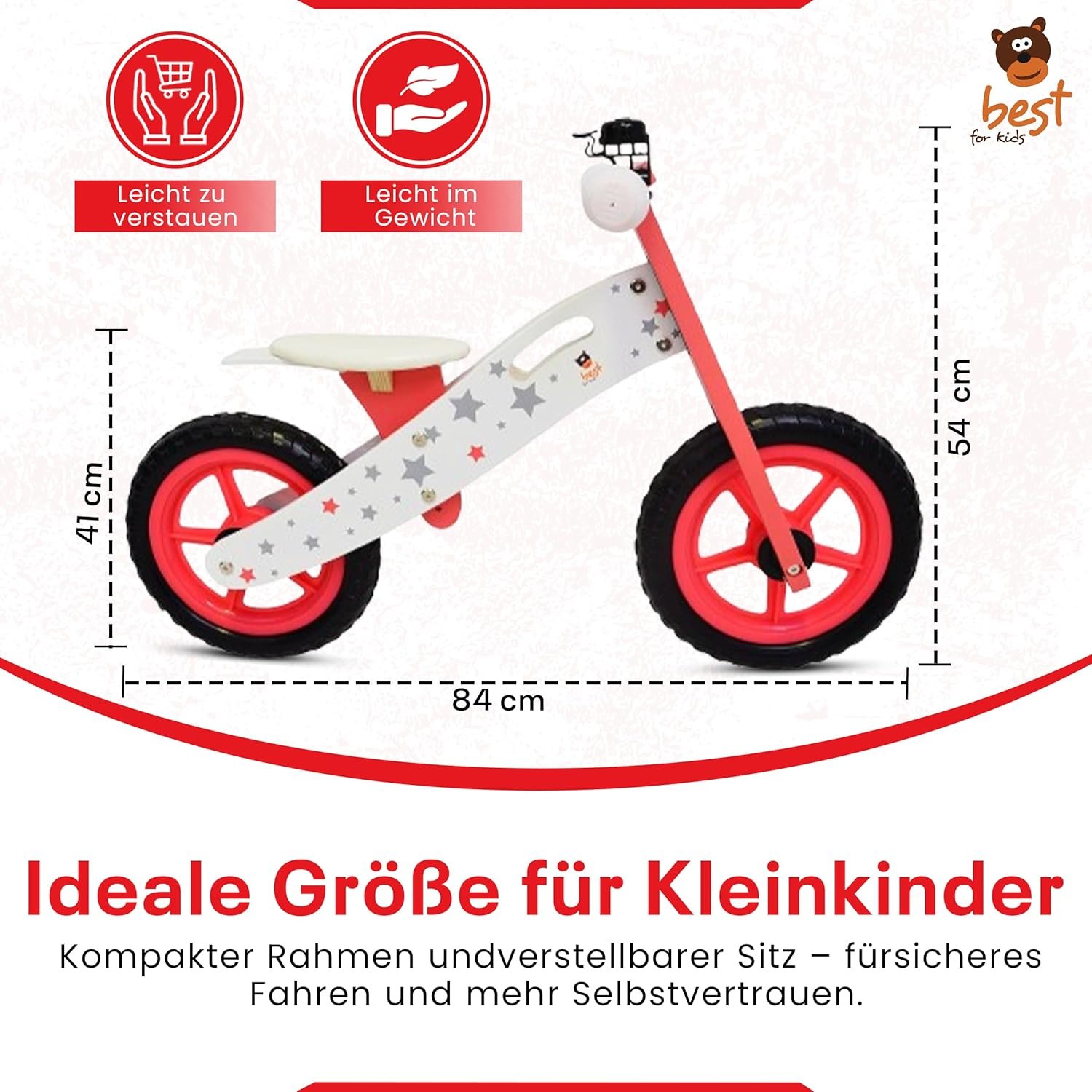 Kinderlaufrad | 12-Zoll-Laufrad aus Holz für Kinder | Bequem, verstellbar und leicht | Ideal Laufrad für Kleinkinder (2–5 Jahre) | Perfekt für das Kindertraining | rutschfeste Griffe
