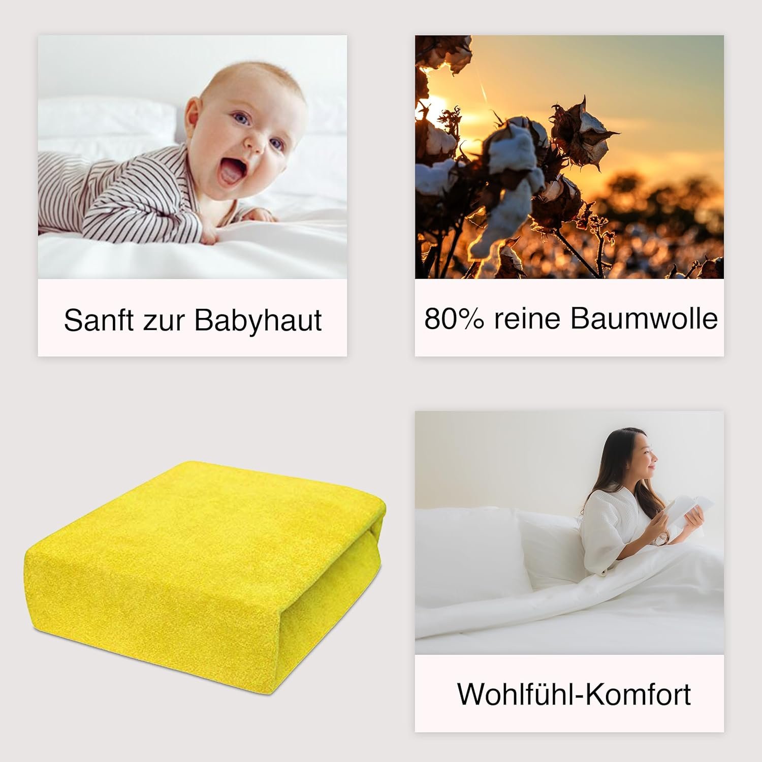 Hergestellt aus 100 % Baumwolle (davon 80 % mit Frottee), bietet das Laken eine weiche, atmungsaktive und saugfähige Oberfläche. Es fühlt sich angenehm auf der Haut an und sorgt für hohen Schlafkomfort – ideal für jede Jahreszeit.