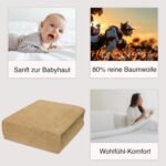 Gefertigt aus 100 % Baumwolle, davon 80 % mit weicher Frottee-Struktur, bieten unsere Bettlaken ein besonders angenehmes, atmungsaktives und saugfähiges Material. So genießen Sie ein komfortables, hautfreundliches Liegegefühl bei jeder Jahreszeit.