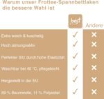 „Spannbettlaken aus elastischem Jersey – Mit neuester Technologie gefertigt – In 22 Farben und 9 Größen erhältlich“