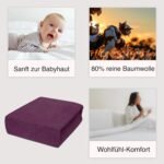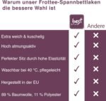 Gefertigt aus 100 % Baumwolle, davon 80 % mit Frottee-Oberfläche, bieten diese Laken ein besonders weiches, atmungsaktives und saugfähiges Material. Die Kombination sorgt für ein angenehmes Hautgefühl und optimalen Schlafkomfort zu jeder Jahreszeit.