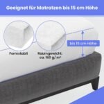 mit einem Stoffgewicht von 160 g/m² überzeugt das Spannbettlaken durch hohe Elastizität, Langlebigkeit und perfekte Passform. Es bleibt auch nach vielen Waschgängen weich und farbecht, während es ein frisches, angenehmes Schlafklima bewahrt.