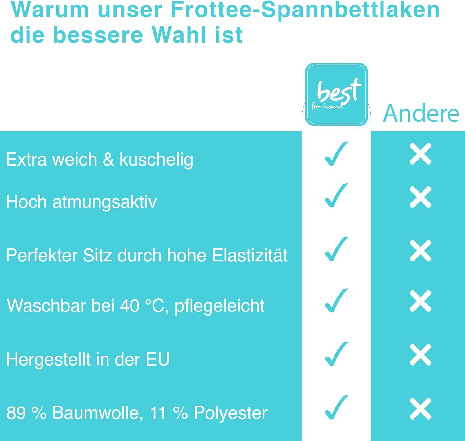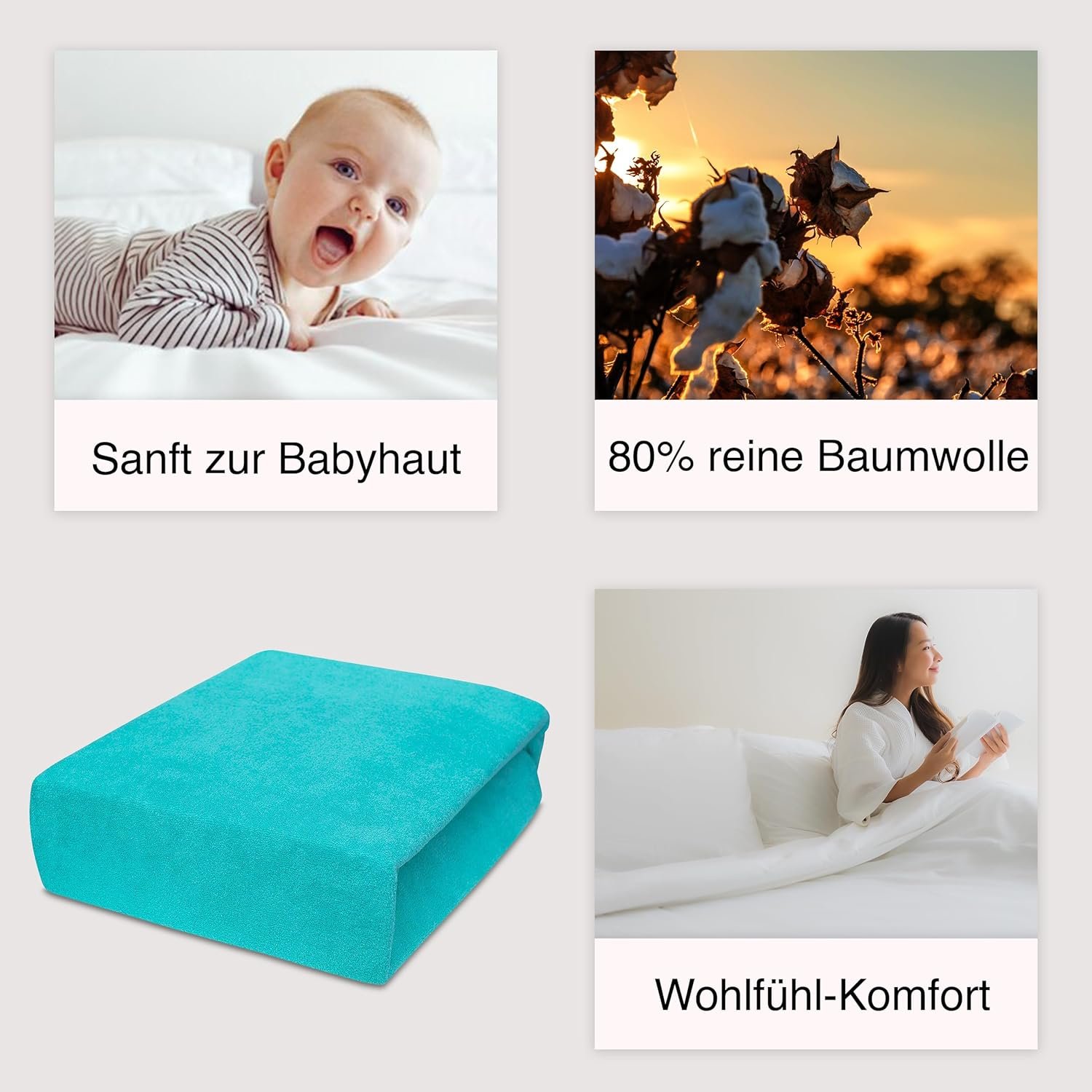 Hergestellt aus 100 % Baumwolle mit einem Anteil von 80 % Frottee bietet das Spannbettlaken höchsten Schlafkomfort. Das weiche, atmungsaktive und saugfähige Material sorgt für ein angenehmes Gefühl auf der Haut und trägt zu einem erholsamen Schlaf bei.