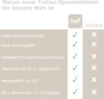 sorgt für ein besonders weiches und anschmiegsames Gefühl auf der Haut. Durch die Kombination von 100 % Baumwolle mit Frotteeanteil bietet das Spannbettlaken hohen Schlafkomfort und ist ideal für angenehme Nächte zu jeder Jahreszeit.