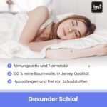 Hergestellt in der EU nach hohen Qualitätsstandards, garantiert das Bettlaken geprüfte Verarbeitung und nachhaltige Produktion. So erhalten Sie ein Produkt, das nicht nur funktional und komfortabel ist, sondern auch umweltfreundlich produziert wurde, wodurch Sie beruhigt schlafen können.