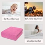 • Das Bettlaken besteht aus hochwertiger Baumwolle mit 80 % Frotteeanteil, wodurch ein weiches und kuscheliges Gefühl auf der Haut entsteht. Das Material ist atmungsaktiv, langlebig und pflegeleicht, sodass Sie auch nach häufigem Waschen ein angenehmes Schlafklima genießen können.