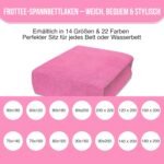 Das Bettlaken besteht aus 100 % Baumwolle, davon 80 % Frottee, für besonders weichen, kuscheligen Komfort. Der atmungsaktive Stoff sorgt für ein angenehmes Schlafklima, ist langlebig und pflegeleicht, sodass Sie auch nach häufigem Waschen eine weiche, hochwertige Oberfläche genießen können.