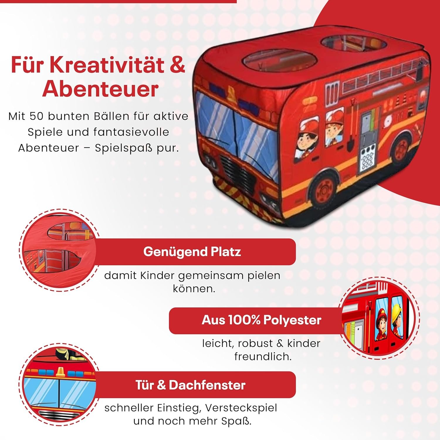 Das Feuerwehr-Spielzelt mit 50 Bรคllen sorgt fรผr groรen Spielspaร fรผr kleine Feuerwehrleute โ auch Mรคdchen lieben es, durch die Luke zu krabbeln. Geeignet fรผr Kinder ab 3 Jahren. - โ๏ธใ๐